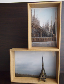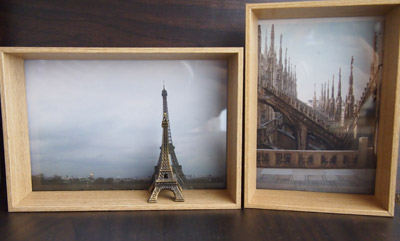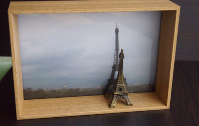パリで撮ったエッフェル塔の写真の前に エッフェル塔のオブジェを置いてみました。