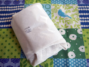 これまで 「せめて衣だけでも」と真っ白なガーゼを纏っていたそうなんですが 今年は麻製のふきんで包まれてやってきました。