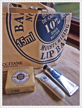 L'OCCITANE のシアシリーズのハンドクリームとリップと石鹸にトートが付いたお買い得セット。