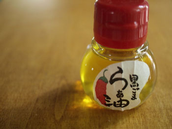 黒ごま香油と沖縄産の島とうがらしで作られている黒ごまらぁ油。
