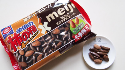 柿の種に MEIJIのチョコがかかってて しかも ピー(ピーナッツ)じゃなくてアーモンド♪♪