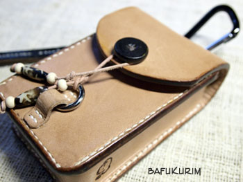 ジーンズなどベルト紐に引っ掛けられるように 小さめのカラビナをつけてもらい