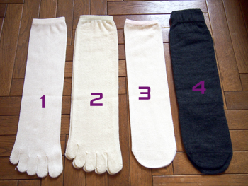 次に 2のコットンかウールの5本指コットンのソックスをはき